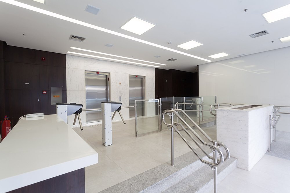 - Estruturas: • Teto Rebaixado • Sprinkler • Piso Elevado • Luminárias • Elevadores • Copa • Ar Condicionado Central